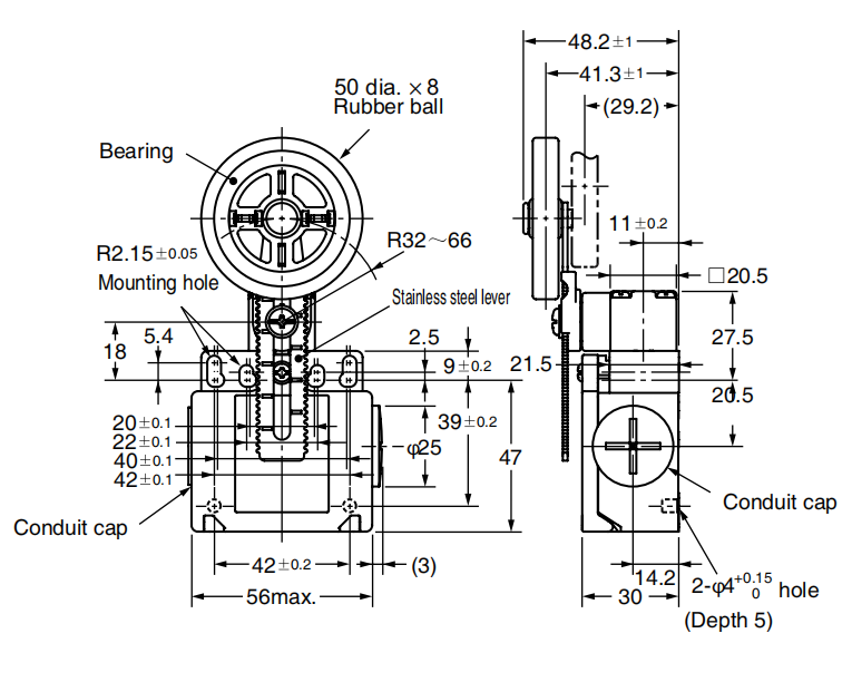 Односторонний кантилеверный тип с шариком (вертикальный) |