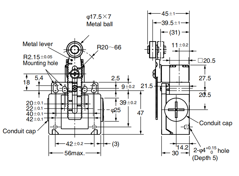 Односторонний кантилеверный тип с шариком (вертикальный) |